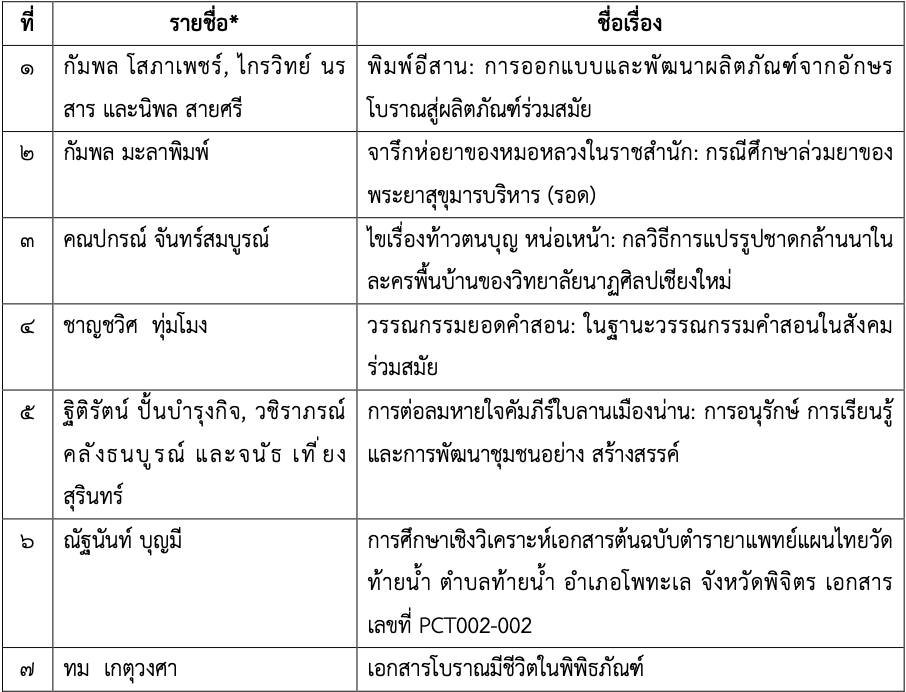 บัดนี้ คณะกรรมการฯ ได้ดำเนินการพิจารณาคัดเลือกบทคัดย่อเพื่อพัฒนาเป็นบทความวิชาการและบทความวิจัย โดยมีรายชื่อดังต่อไปนี้