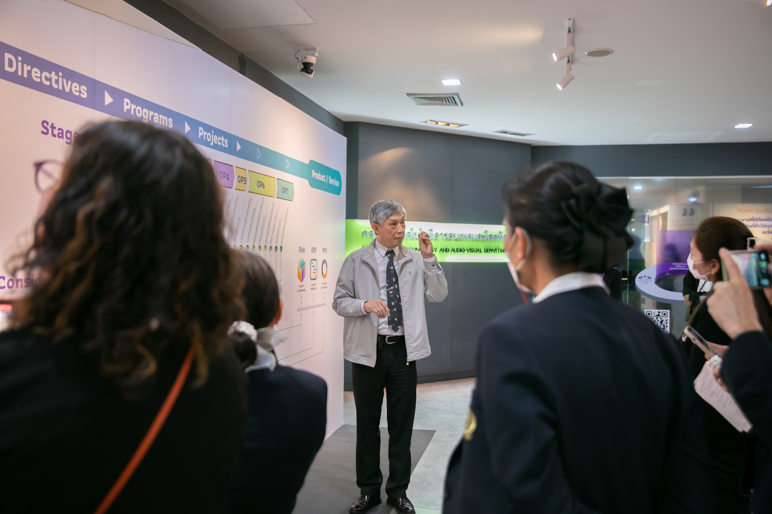 นอกจากหารือทิศทางความร่วมมือทางวิชาการแล้ว ในด้านการบริหารองค์กรอย่างมีคุณภาพเป็นส่วนหนึ่งของการศึกษาดูงาน ศมส. ในครั้งนี้ เช่น PMOP (Project Management Operation Platform) เป็นระบบการบริหารองค์กรที่ ศมส. พัฒนาขึ้น รวบรวมกระบวนการขั้นตอนที่สำคัญ และแนวปฏิบัติที่ดี ซึ่งนำไปสู่มาตรฐานการบริหารโครงการและเทคนิกที่จำเป็น ที่มีความสัมพันธ์เชื่อมโยงกับนโยบายและยุทธศาสตร์องค์กร และ ระบบ ERP ที่เป็นหนึ่งในเครื่องมือที่ช่วยจัดการโครงการต่างๆ อย่างมีประสิทธิภาพด้วย