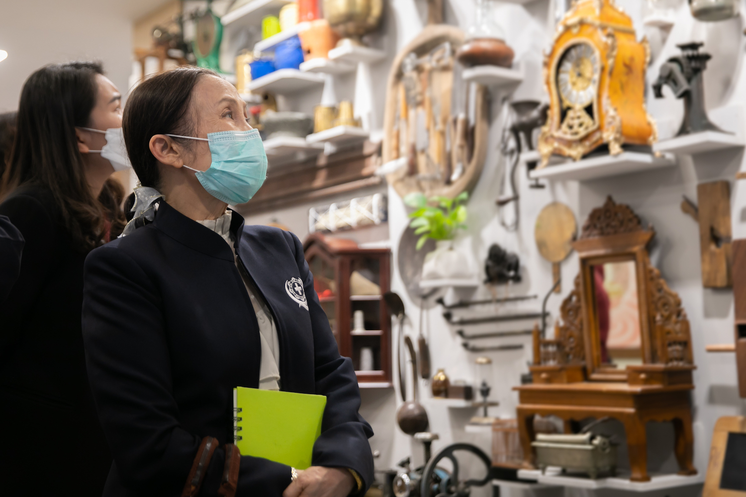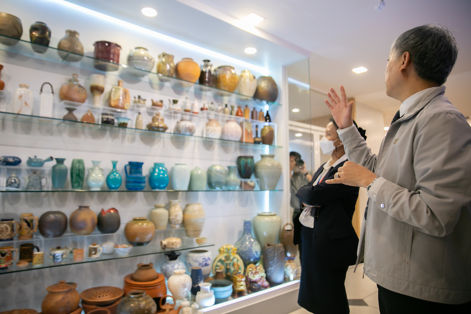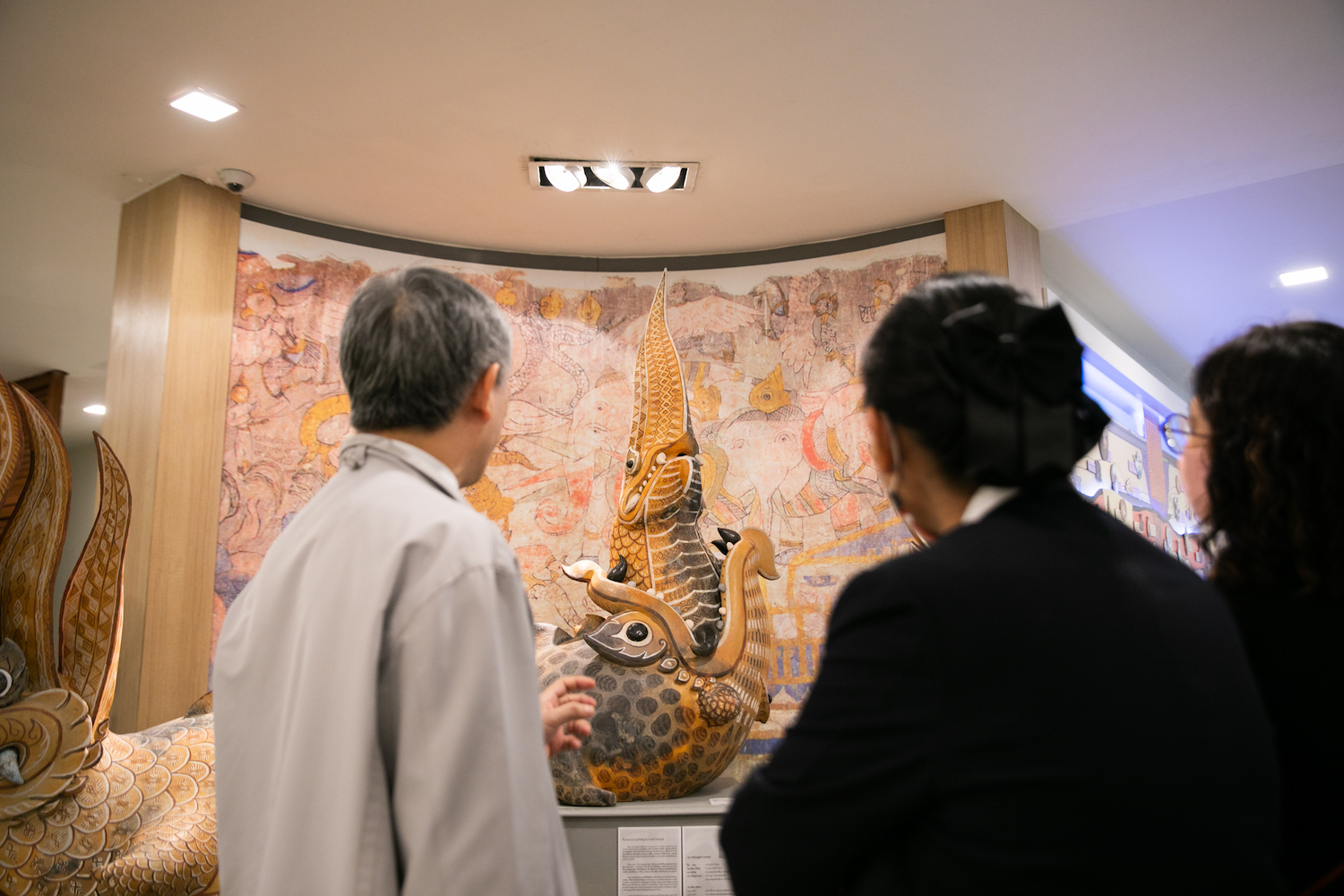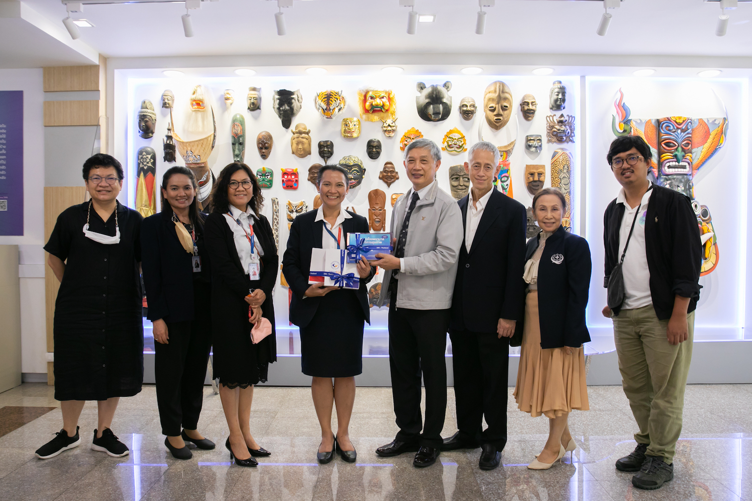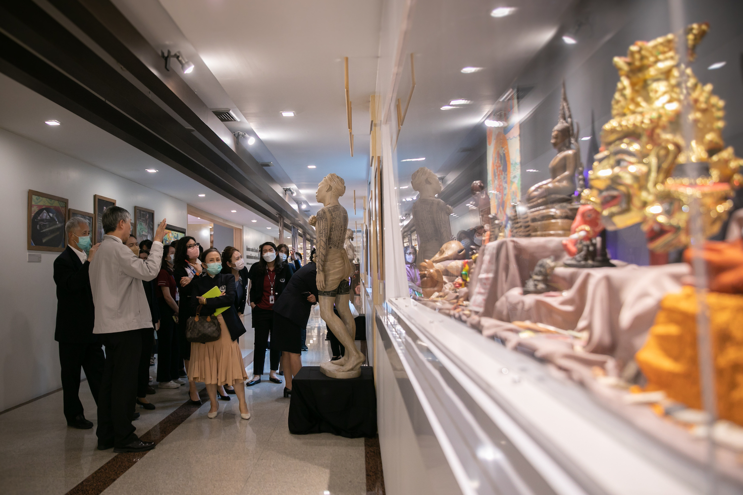 จากนั้นได้ร่วมชมนิทรรศการทางสังคมวัฒนธรรมที่จัดแสดงเป็นพื้นที่เรียนรู้ทางสังคมวัฒนธรรม บริเวณชั้น 2 ประกอบด้วย การทำความเข้าใจความเป็นมาของมนุษย์กับเครื่องปั้นดินเผาที่ทำในประเทศไทย เครื่องมือเครื่องใช้ในชีวิตประจำวันกับความหมายทางวัฒนธรรม ภาพถ่ายโควิด นิทรรศการลายสัก: ศิลปะแห่งศรัทธาบนเรือนร่าง จดหมายเหตุมานุษยวิทยา นานาหน้ากาก ฐานข้อมูลสังคมวัฒนธรรมของ ศมส. ผ่าน QR Code รวมไปถึงพื้นที่เรียนรู้ อยู่ร่วม ให้เห็นปรากฏการณ์ความหลากหลายทางวัฒนธรรม ไม่ว่าจะเป็น อคติทางวัฒนธรรม มานุษยวิทยากับเกม และหนังสือน่าอ่านที่เกี่ยวข้อง ณ อาคารสุขกายใจ